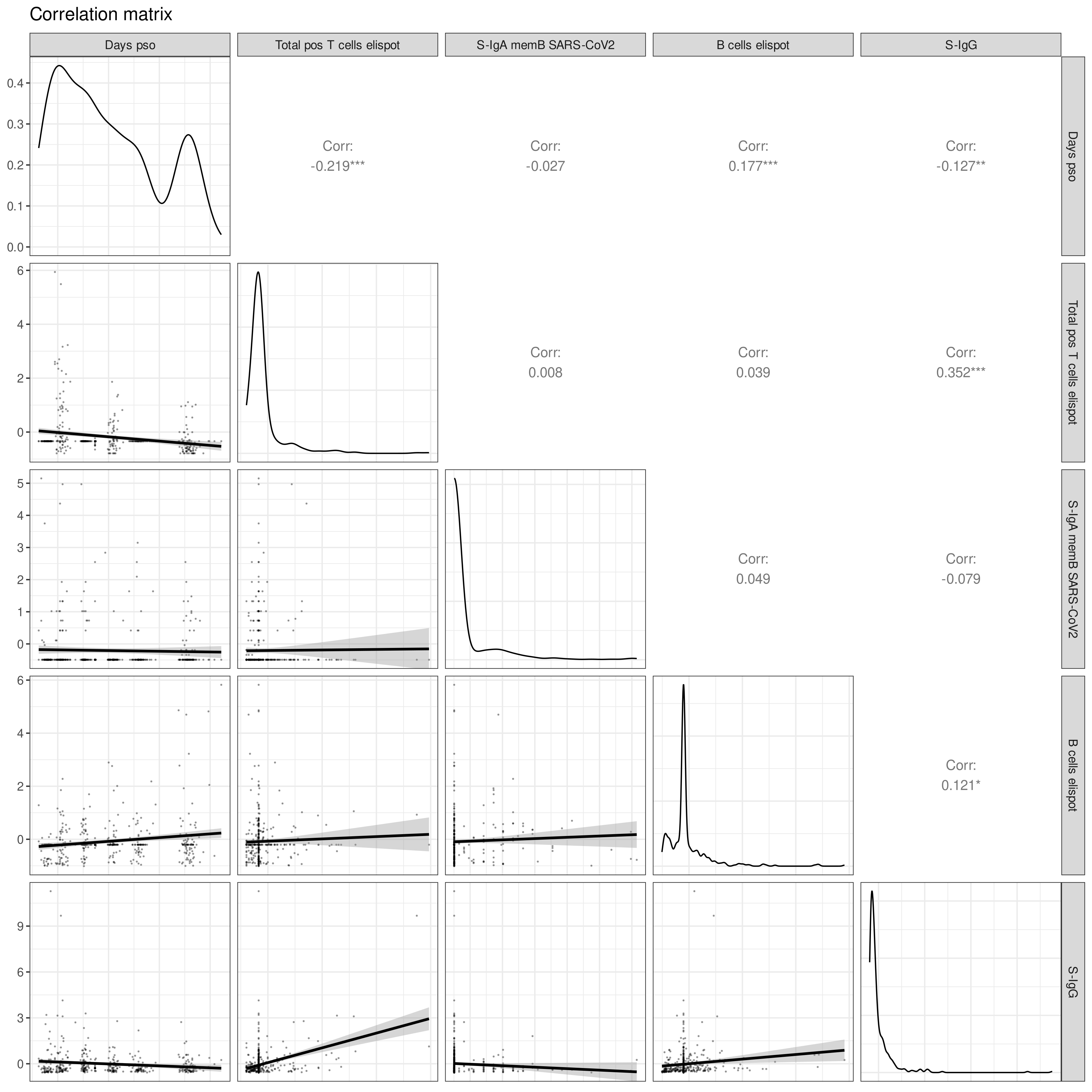 This can be showcased using numerical variables from the COVID Pitch dataset (`covid_pitch.csv` from [Introduction](https://atomic-lab.gitbook.io/pandora/example-workflows/example-2-sars-cov-2-infection/introduction)) such as days post onset of SARS-CoV-2 symptoms (`Days pso`), T and B cells ELISpots (`Total pos T cells elispot`, `B cells elispot`), and concentrations of various immunoglobin types (`S-IgA memB SARS-CoV-2`, `S-IgG`)