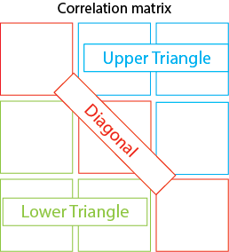 1. **Upper triangle**: The outputs in the upper triangle vary by the variable types being compared. Each possible output by variable type comparison is described below: