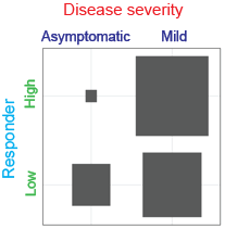 1. As shown in the image above, `Disease severity` is split into 'asymptomatic' and 'mild', while `Responder` is split into 'high' and 'low'.&#x20;
